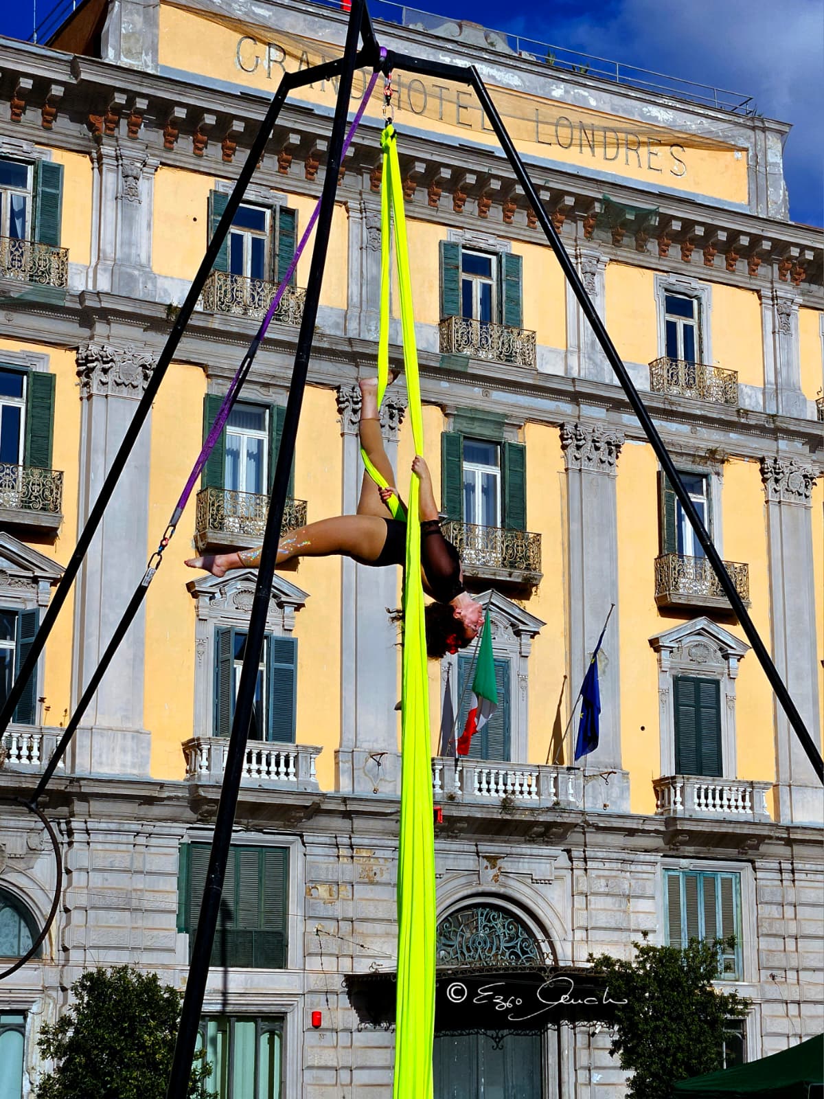 L’area di danza aerea, a cura di Aerea 51, ha riscosso grande successo, con spettacolari esibizioni che hanno avuto come sfondo il Vesuvio, trasformando la piazza in un palcoscenico unico e suggestivo.